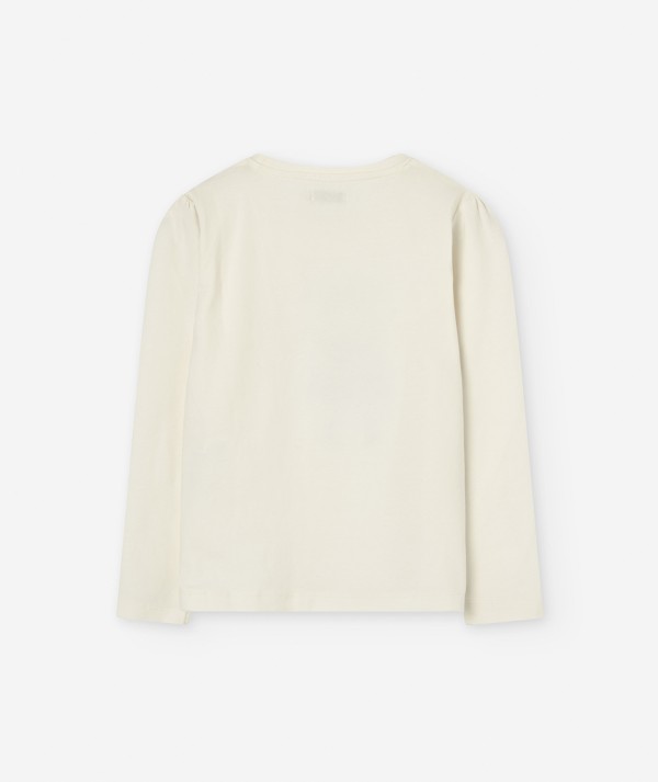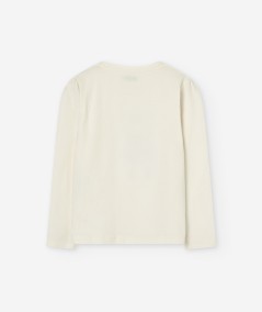 • T-shirt en jersey écru pour enfant fille avec motif : Ce t-shirt écru présente un joli motif de fille, ajoutant une note charmante et amusante au look de votre enfant.