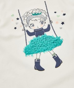 Ce t-shirt en jersey écru avec motif fille pour enfant fille est parfait pour les parents qui recherchent une pièce confortable et adorable, signée Losan, pour accompagner chaque journée de leur petite fille avec style et douceur.